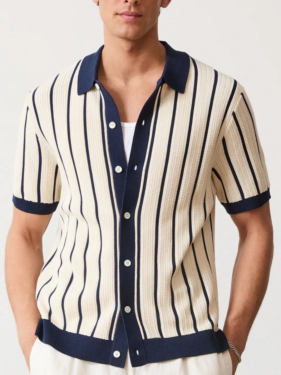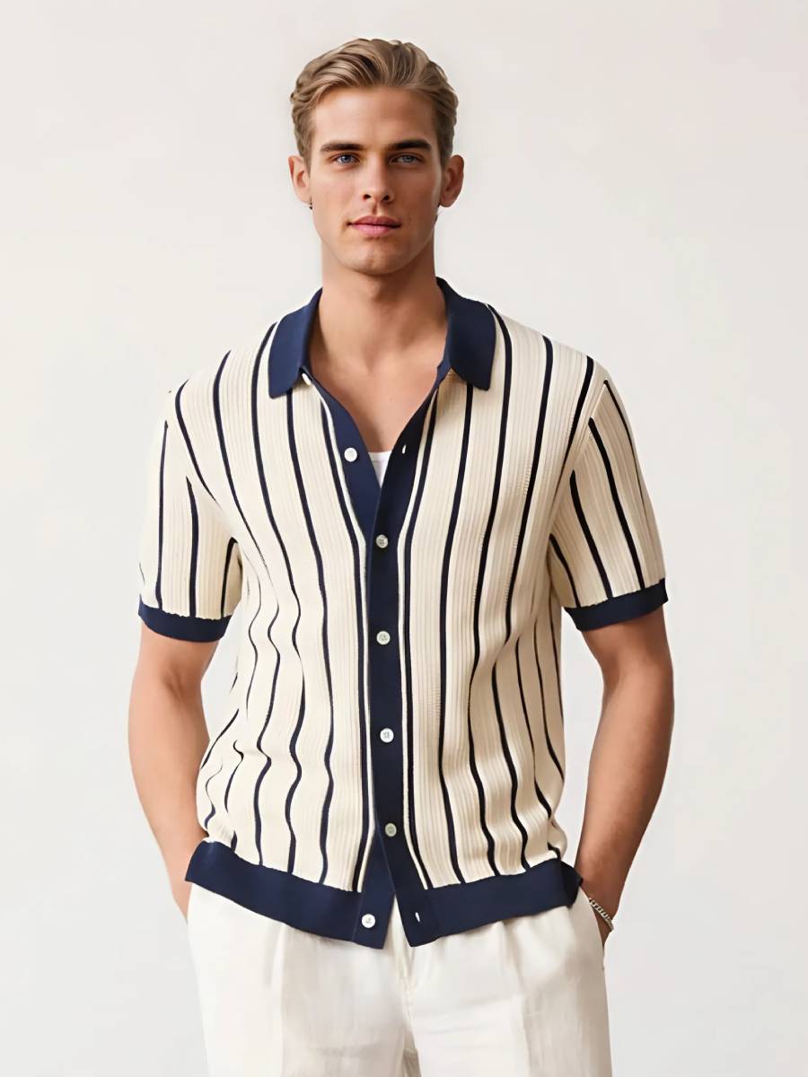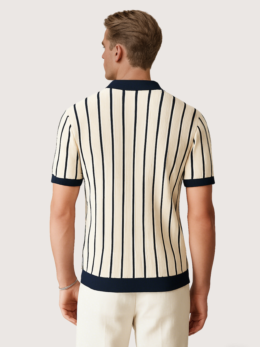 Kurzarm Strickpolo Weiß Gestreift – Sommerliches Retro Herrenpolo